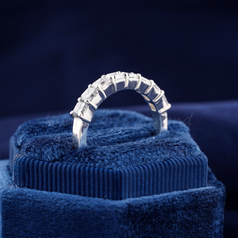 0.20 Ct Each Asscher Diamond Band Bridal Set Band 8 Stone Wedding Band Lab Grown Diamond Engagement band Anniversary Gift, Wedding Band