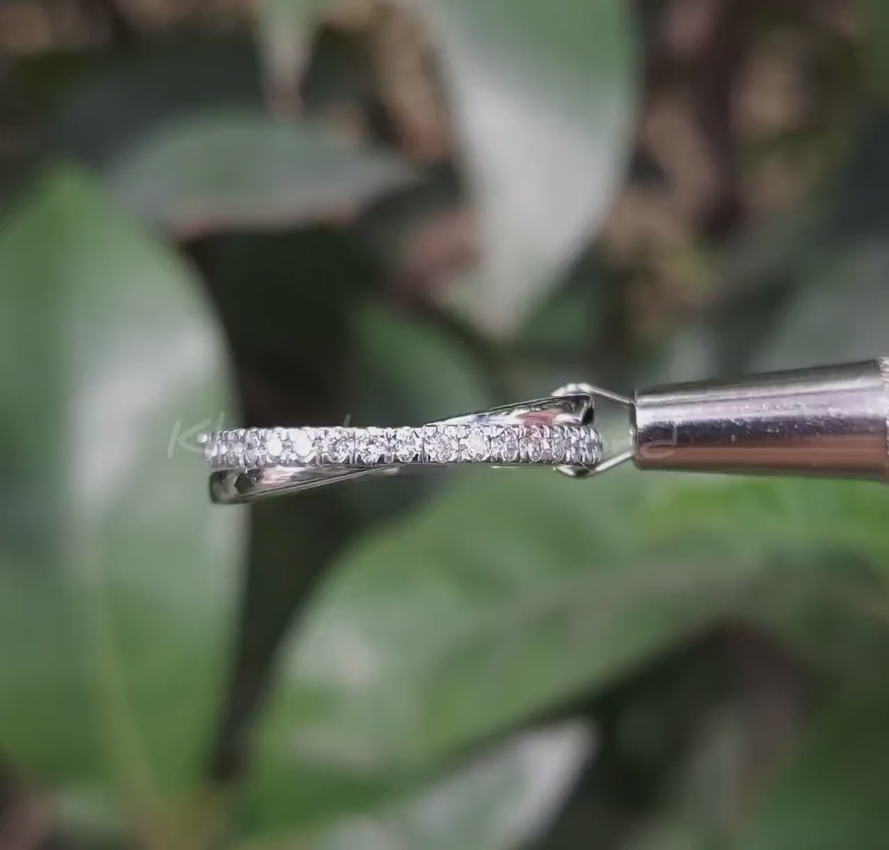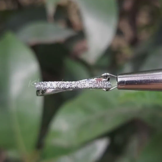 1.60mm Round Lab Grown Diamond Engagement Ring Eternity Diamond Band 14K White Gold Band Criss Cross Round Wedding Band X Diamond Ring