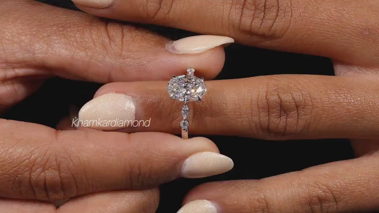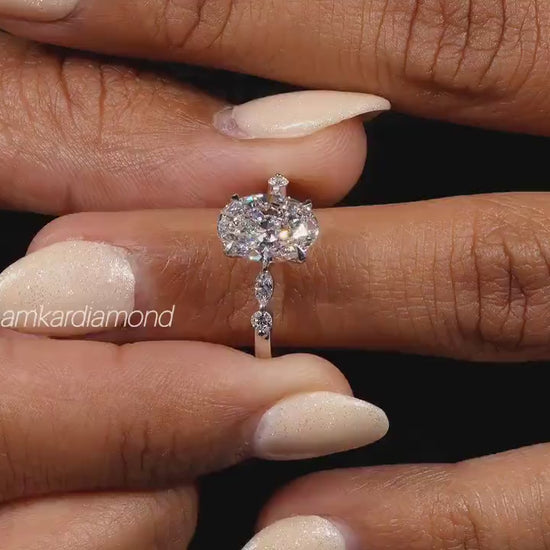 2.00CT Oval Cut Lab Grown Diamond Engagement Ring, Side Marquise and Round Diamonds, Wedding Ring For Her, Oval Wedding Ring For Women, Oval Diamond Ring For Her, Five Stone Lab Grown Diamond Ring,Oval Diamond Engagement Ring, Big Diamond Ring for Her, Lab Diamond Wedding Ring, Claw Prong Set Ring, Oval Cut Ring For Her, Five Stone Ring, Best Proposal Ring, Eco-Friendly Diamond Ring, Unique Anniversary Ring For Women, Birthday Gift Ring For Her, Promise Ring, Gift For Her, Conflict Free Ring, IGI Certified Diamond Ring, Handmade Ring For Women, Diamond Ring For Her, Man Made Diamond Ring, Rings For Women