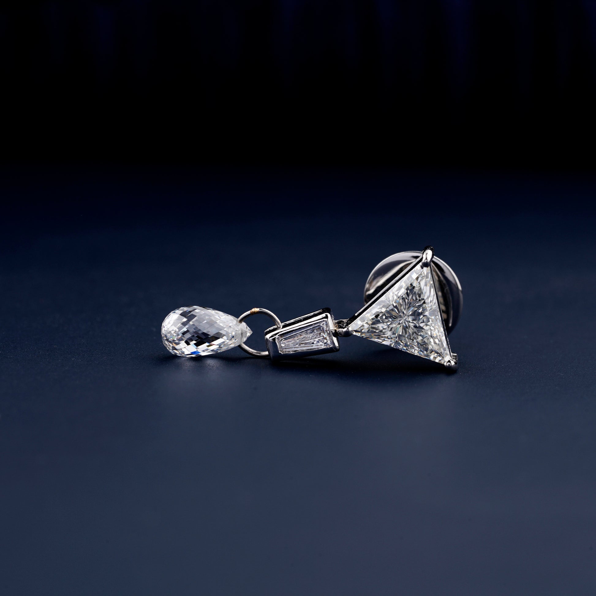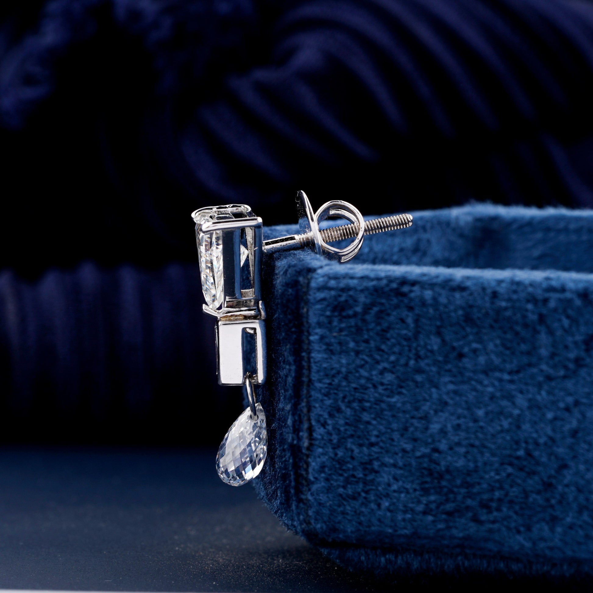 3.50 TCW Triangle Cut Diamond With Briolette Drops Stud Earrings 14K Yellow Gold Diamond Bridal Earrings Eco Diamond Cluster Stud Earrings