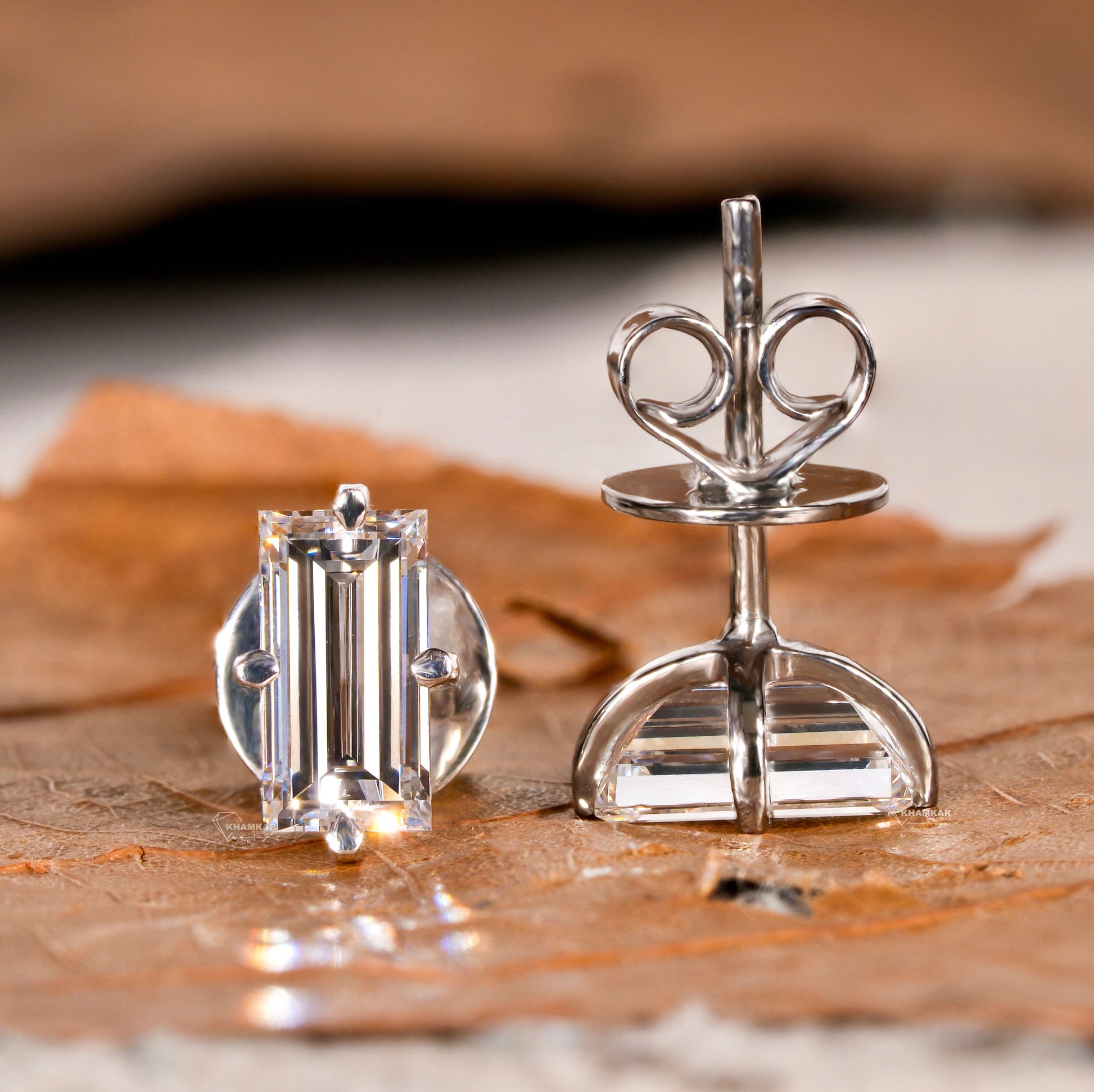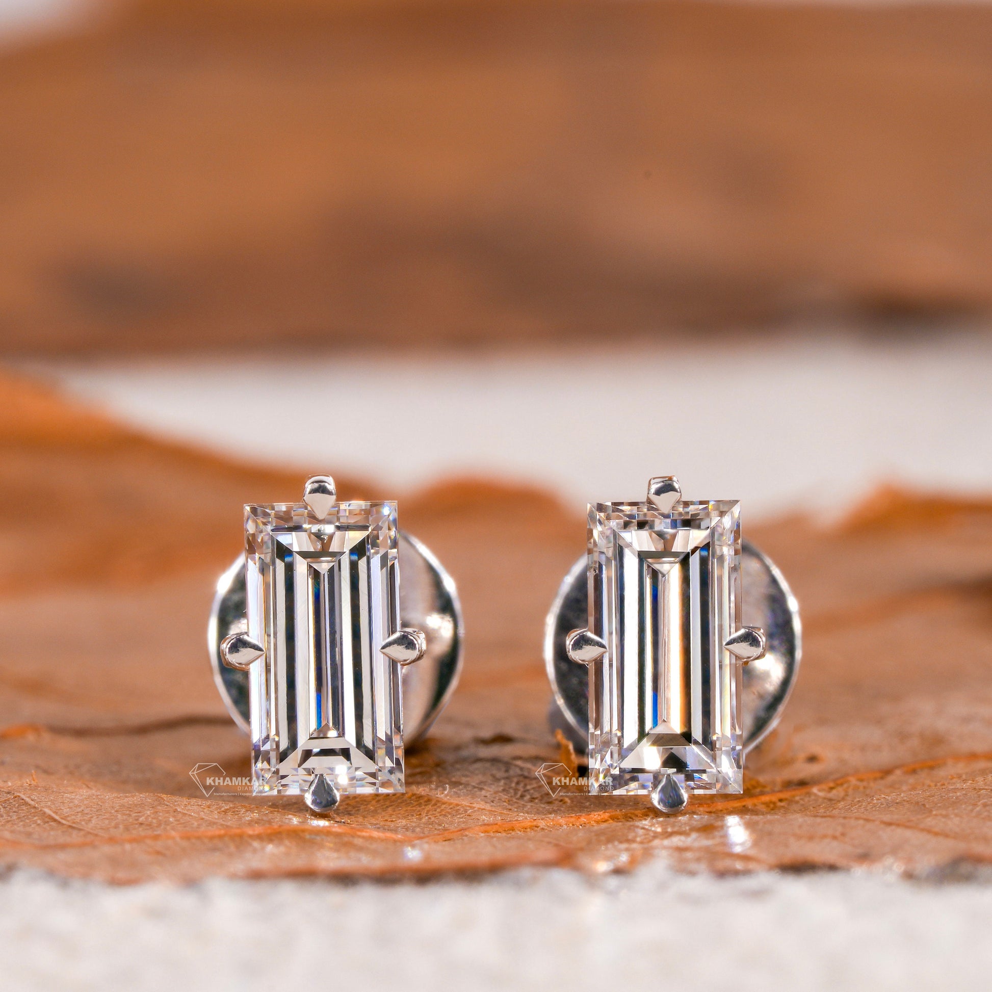 Baguette Lab Grown Diamond Stud Earrings,0.50-2.00 CT Push/Screw Back Earrings,Comfort Fit Earrings for Daily Wear,Diamond Studs for Wife