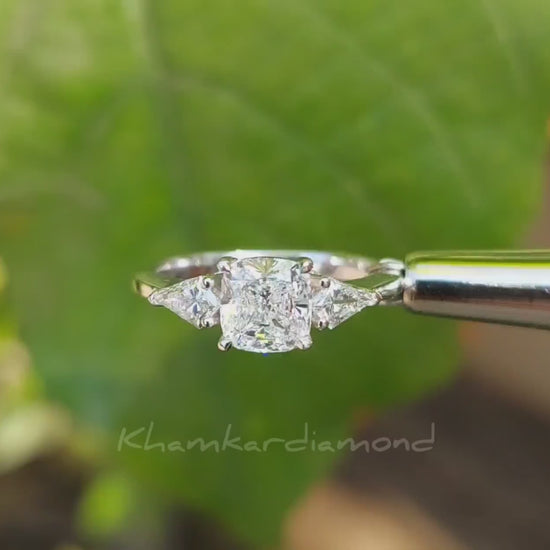 Cushion Cut Diamond Ring,1 Ct Lab Grown Diamond Engagement Ring E/VS1,Kite Cut Side Stone Wedding Ring,Three Stone Diamond Anniversary Ring