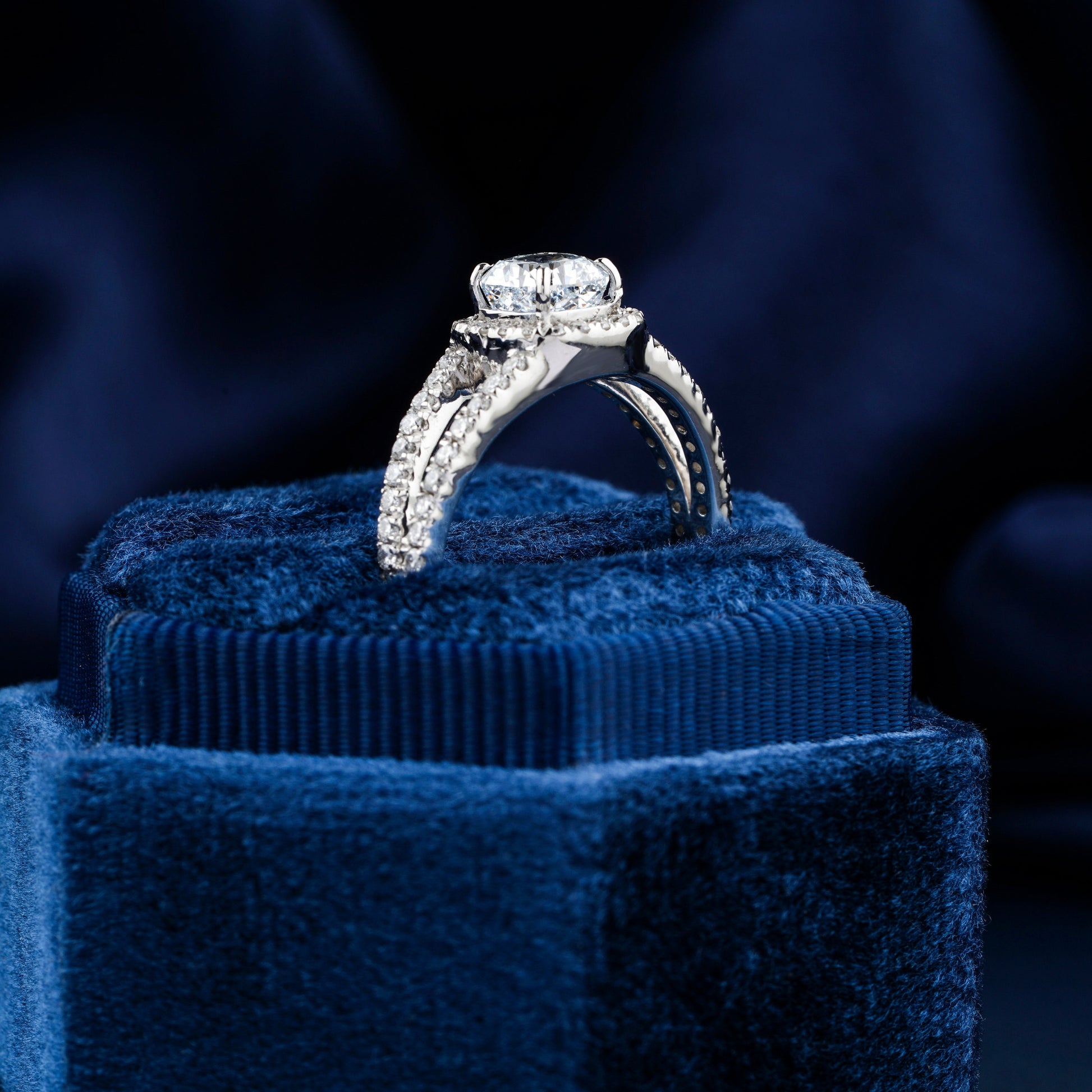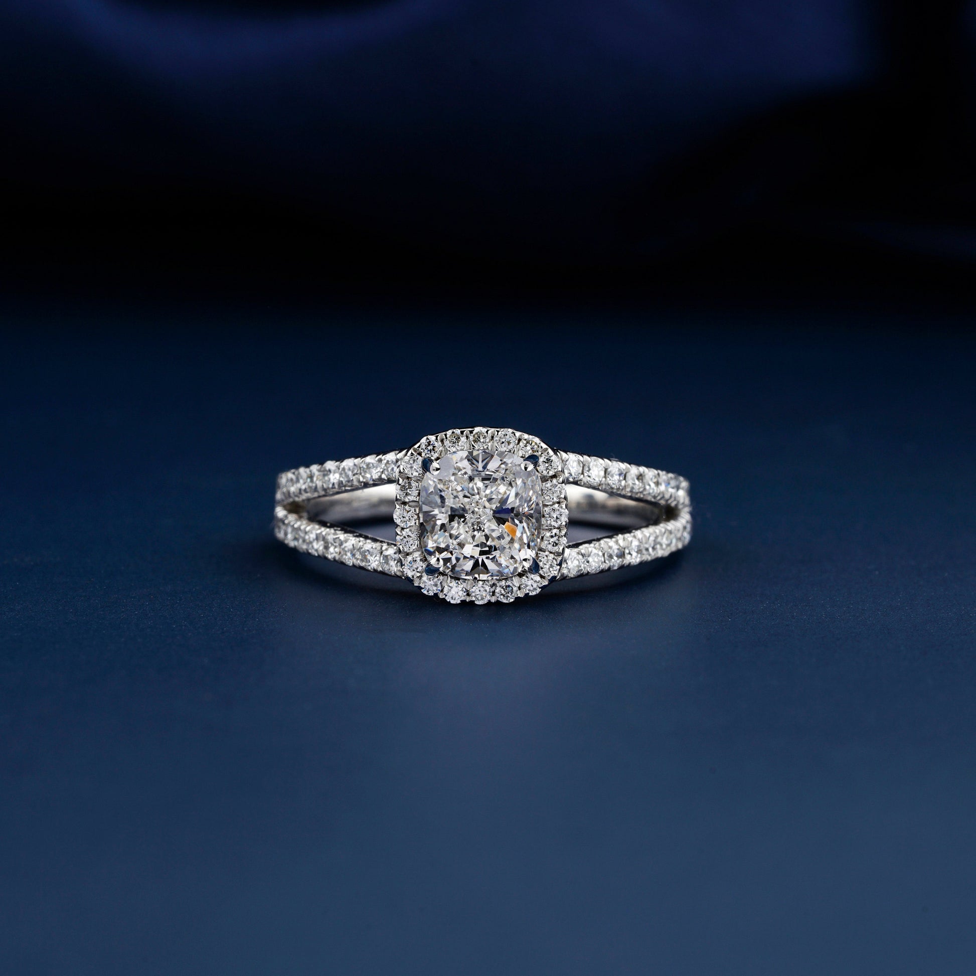 Cushion Cut Lab Grown Diamond Engagement Ring,1 CT E/vs1 Halo Wedding Band,Split Shank Diamond Ring,Anniversary Ring For Gift,Ring For Her