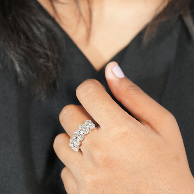 Five Stone Oval Lab Grown Diamond Ring,E/VS1 Lab Created Diamond Engagement Ring,Certified Diamond Ring,Wedding/Anniversary Ring For Gift