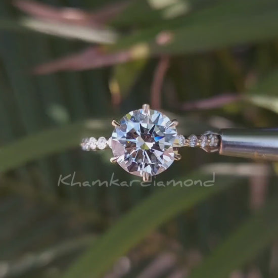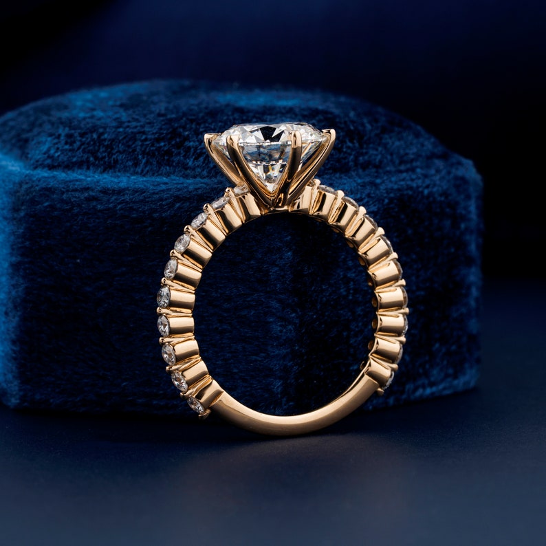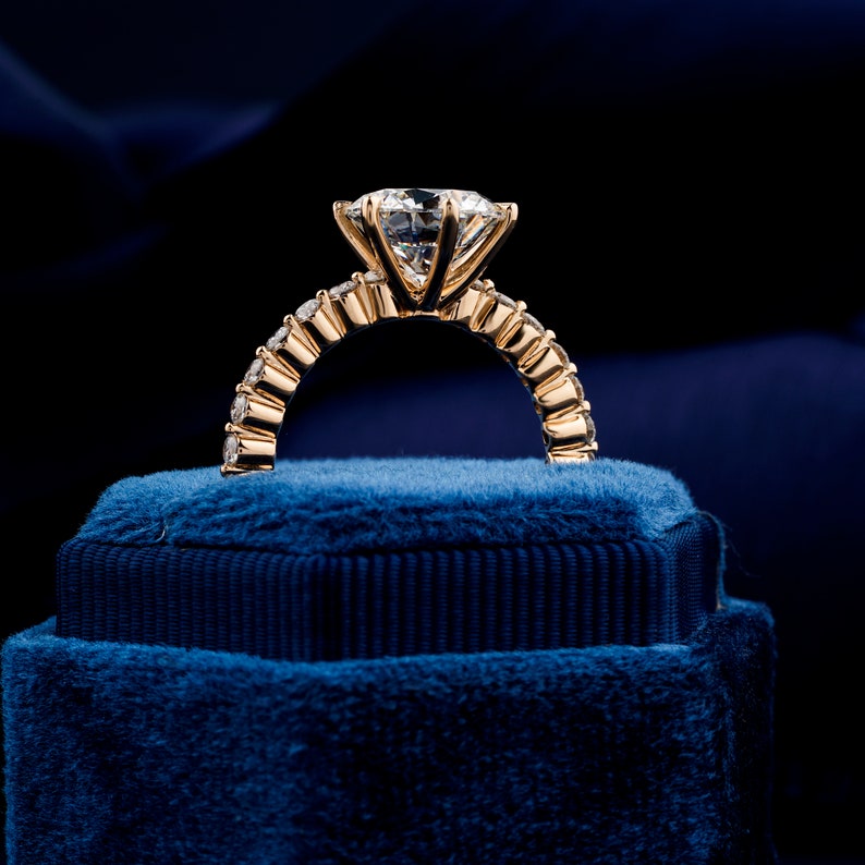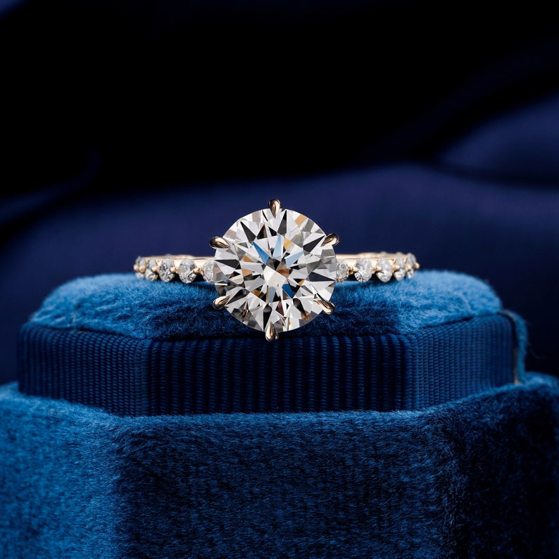 Round Cut Lab Grown Diamond Engagement Ring,0.50 To 3 Ct E/VS1 Diamond Ring,Pave Diamond Wedding Ring,Anniversary Gift,CVD Diamond,Gift Ring