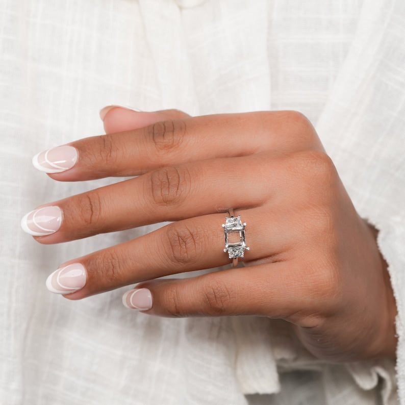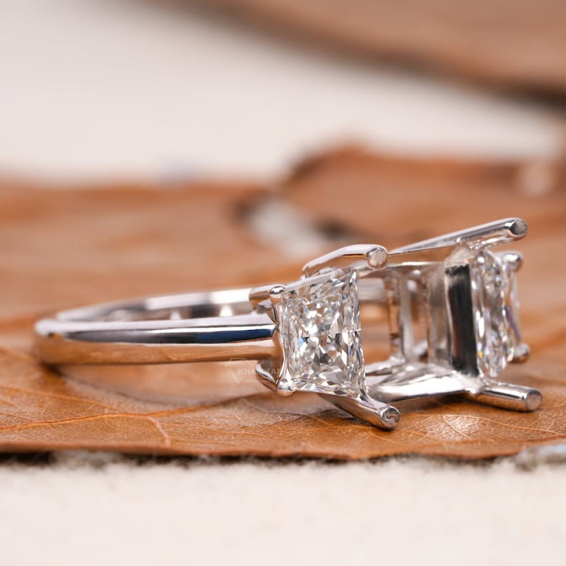 Trapezoid Cut Lab Diamond Accents For Princess Shape Ring, Princess Shape Semi Mount Ring Setting, Handcrafted Diamond Engagement Ring For Her, Princess Shape 3 Stone Semi Mount Prong Setting Ring, 14K White Gold Gold Lab Made Diamond Wedding Gift Ring, Ready To Be Set With your Own Stone, Princess Shape Semi Mount Birthday Gift Ring, Without Stone Ring For Surprise Gift, Three Stone Lab Diamond Ring For Love, Semi Mount Ring For Custom Designs