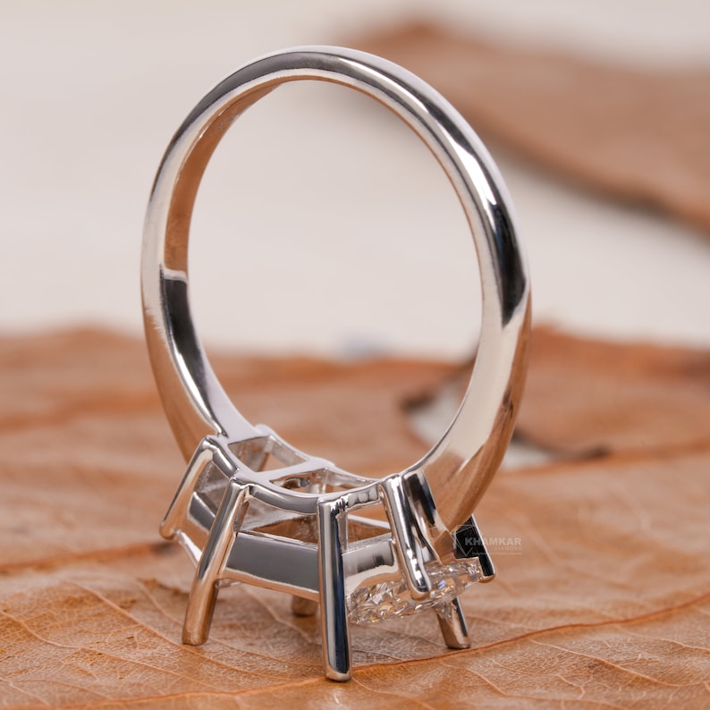 Trapezoid Cut Lab Diamond Accents For Princess Shape Ring,Princess Shape Semi Mount Ring Setting,Handcrafted Diamond Engagement Ring For Her
